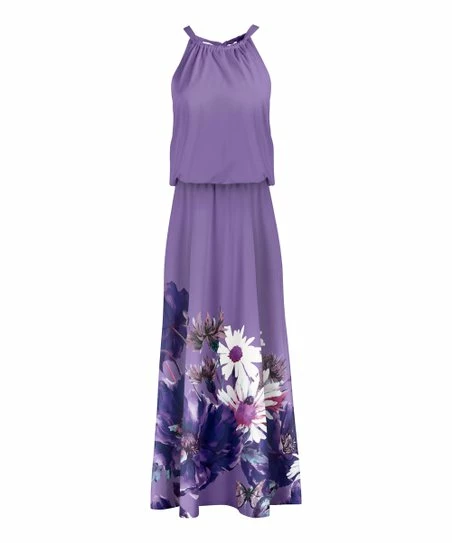Flowy sleeveless dress with a flattering halter neckline and an eye-catching print.