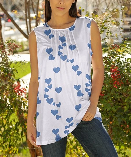 Lily | Lavender & Blue Heart Pleat-Front Sleeveless Tunic – Women