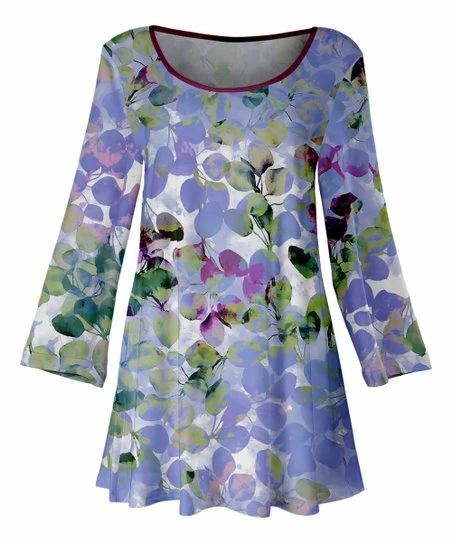 Elevate your ensemble with this boldly printed tunic featuring three-quarter sleeves and a flowy fit.