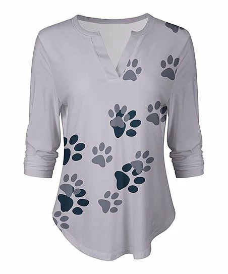 Increase your weekend style possibilities with this flamboyantly patterned notch neck tee framed by long sleeves. A curvy hem makes a graceful transition to whatever you pair it with.
