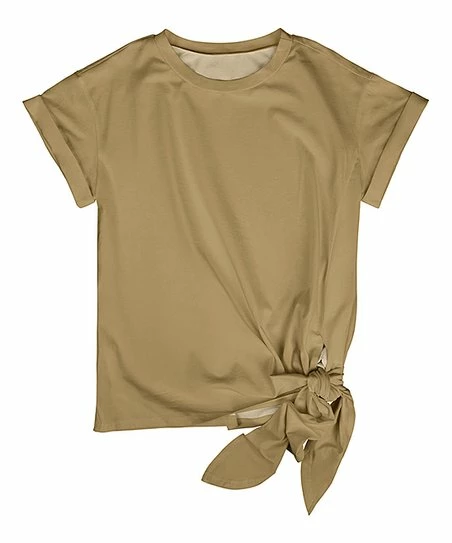 Enliven your warm-weather look with this softly hued tee featuring a trend-right tie at the hem. Stretch-infused material keeps it comfy all day long.