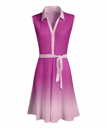 A sharp collar and a button-front detail inspire preppy panache when you greet the sun in this waist-accentuating dress.