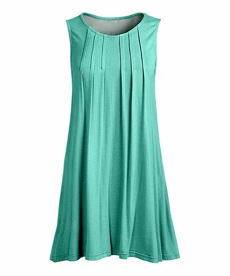 A bright solid hue lends easy-styling flair to this swingy tunic featuring textured pleats and a breezy sleeveless silhouette.