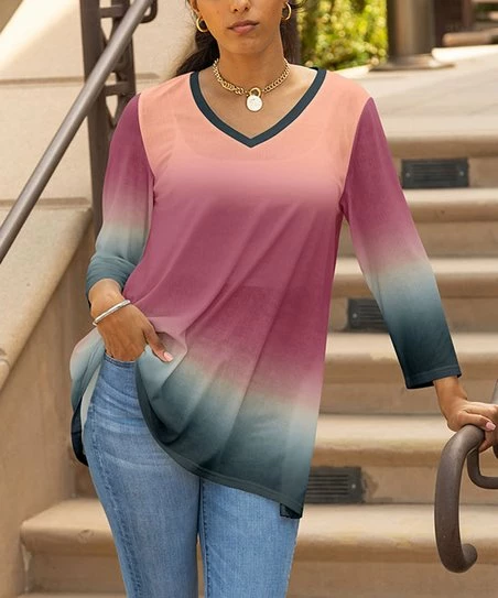 Lily | Mauve & Gray Ombré Three-Quarter Sleeve Tunic – Women