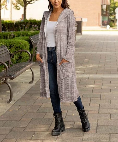 Fend off cooler temperatures in this cozy cable-knit hooded duster featuring pockets to warm your hands or carry little necessities.