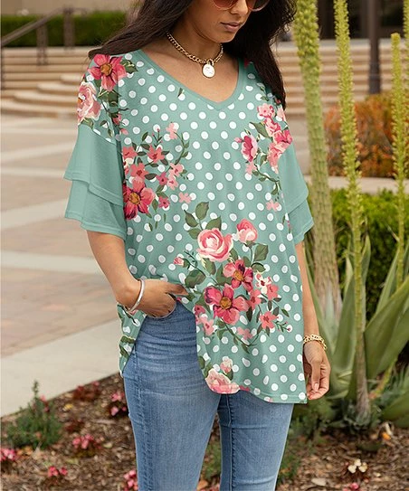Fashioned with roomy half sleeves and a standout print, this v-neck tunic brings laid-back sophistication to your closet.