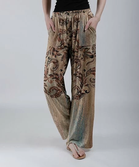 Lily | Mocha & Brown Floral Wide-Leg Pocket Pants – Plus