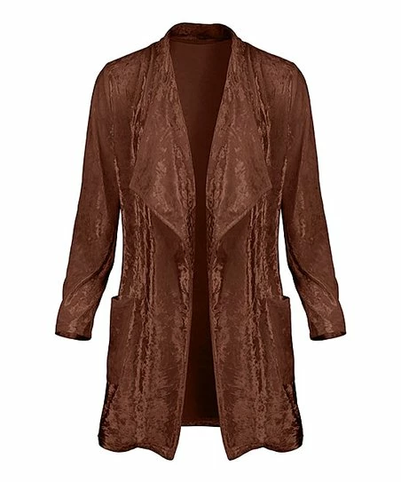 Create a cozy layered look that exudes an air of subtle luxury as you slip on this soft velvet open cardigan that shimmers softly as it catches the light. Side pockets offer handy storage space when you’re on the go.