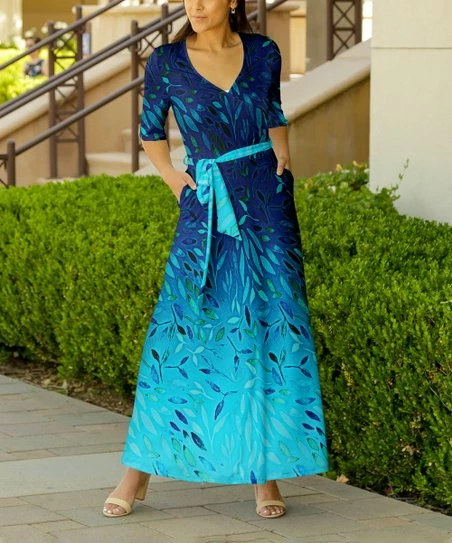 Spruce up your collection with this surplice maxi dress that showcases a belted tie-waist, half sleeves and pockets.