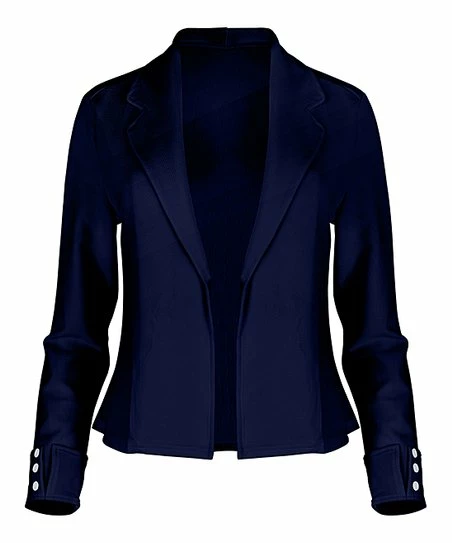 Add a smart finish to your look with this open-front blazer that features sleek lapels and a versatile solid hue.