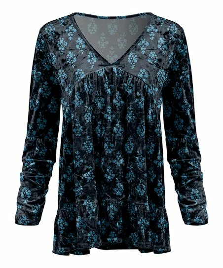 Enjoy the luxurious feel of this velvety tunic featuring a flowy silhouette with a v-neckline and an abstract pattern.