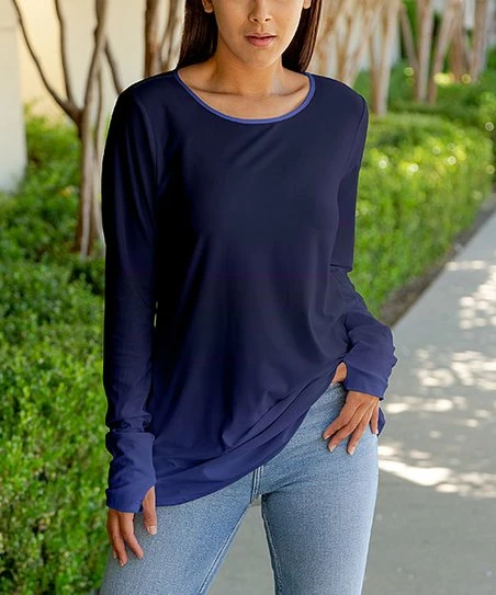 Stretch-blend fabric ensures a just-right fit when you wear this tunic, and thumbholes at the sleeves help keep your hands cozy during cool weather.