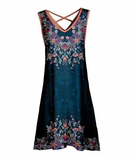 Lily | Navy & Coral Floral Crisscross-Back Sleeveless Dress – Women & Plus