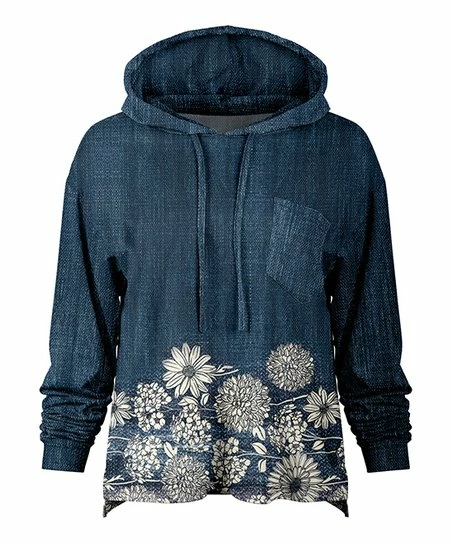 Lily | Navy & Cream Floral Chest-Pocket Hoodie – Women & Plus