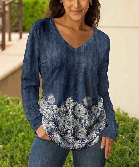 Enliven your everyday style with this long-sleeve tunic featuring a bold pattern and a dose of stretch.