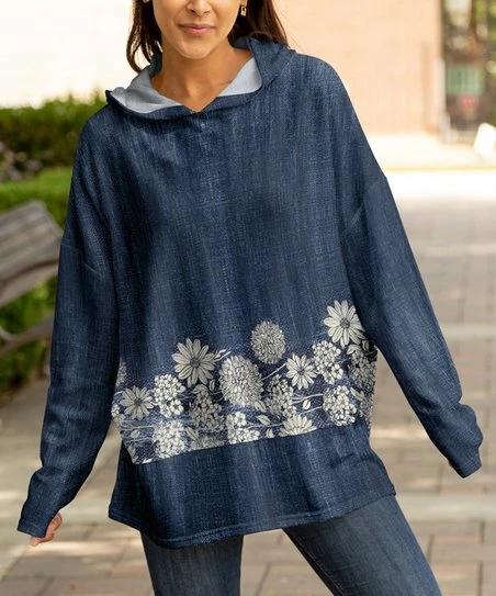 Ease through the day in this relaxed hoodie featuring a fun pattern and a dose of stretch.
