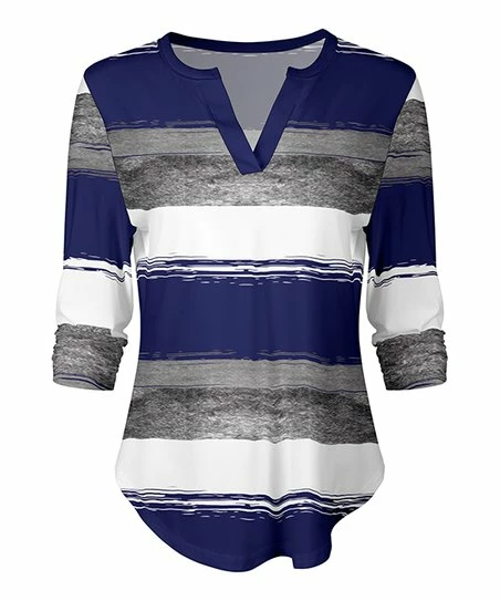 Kick your casual closet up a notch with this uniquely patterned top featuring stretchy knit fabric and a graceful curved hemline. Pair with jeans, leggings or slacks for comfortably versatile style.