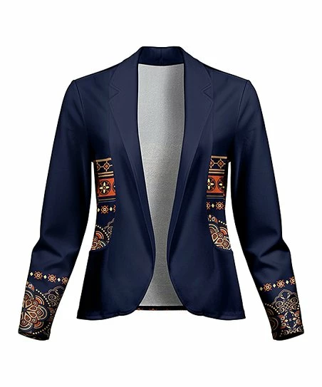 Blazer featuring stretch-infused fabric and a vibrant boho medallion print.