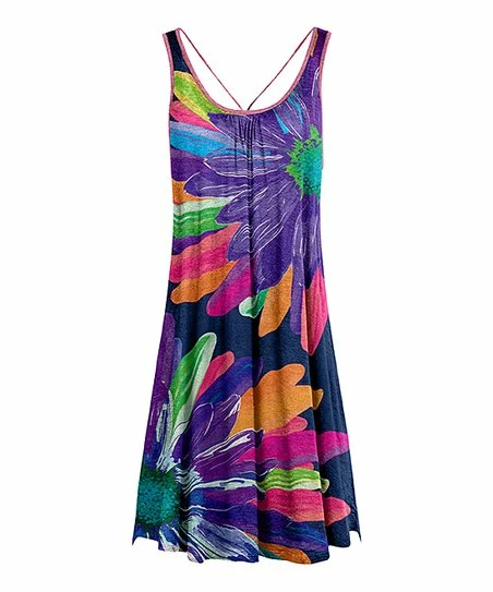Lily | Navy & Orange Floral Crisscross-Back Sleeveless Dress – Plus