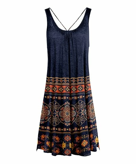 Go for a trend-right fit in this flowy sleeveless dress featuring sassy crisscrossed straps and a pleated scoop neckline. Stretch-blend fabric offers the easygoing comfort you’re after.
