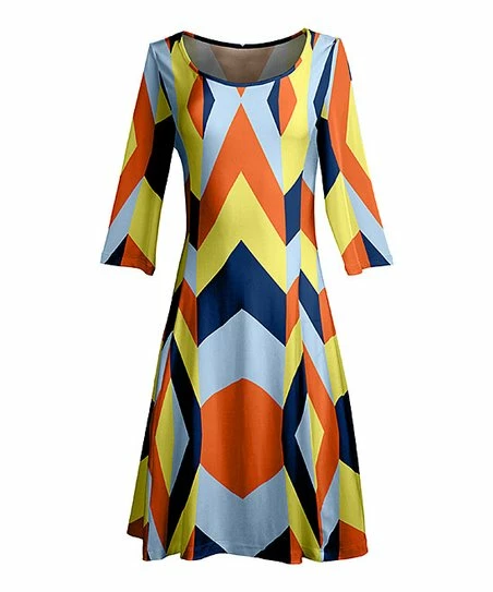 Embolden your work-to-weekend style with the flowy appeal of this A-line dress featuring stretch-infused fabric and three-quarter length sleeves for comfortable season-spanning wear.