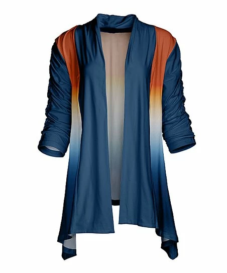 Top off your ensembles with panache this waterfall cardigan that features a get-noticed print and a shawl collar. The stretch-knit fabric lets keeps styles comfy.