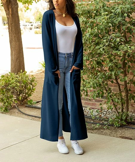 Go bold with your cool-weather looks when you don with this longline duster featuring an open-front design, cozy long sleeves and two pockets for your must-have essentials.