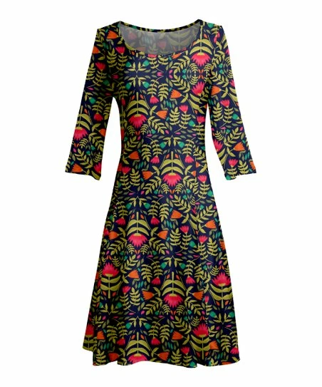 This A-line dress features a bold print, comfy long-sleeve design and a hint of stretch.