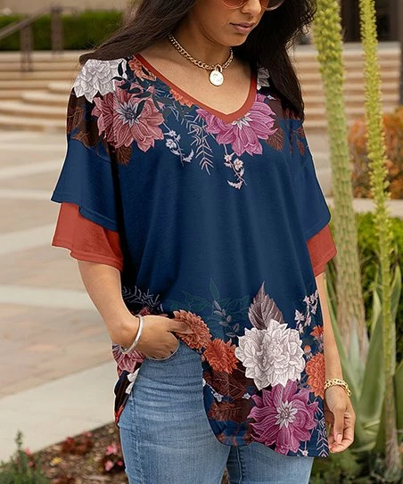 Ruffled layers at the sleeves lend bohemian glamour to this v-neck tunic showcasing a relaxed silhouette for comfortable appeal.