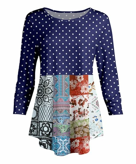 Step up your style with this patterned tunic featuring long sleeves and a gracefully curved hem.