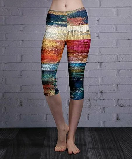Stretch-blend material promises comfy flexibility in these capri leggings featuring a stripe pattern.