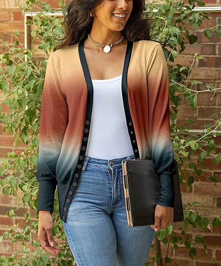 Lily | Navy & Rust Stripe Snap-Button Cardigan – Women & Plus