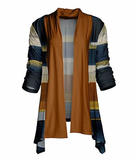 Top off your ensembles with panache this waterfall cardigan that features a get-noticed print and a shawl collar. The stretch-knit fabric lets keeps styles comfy.