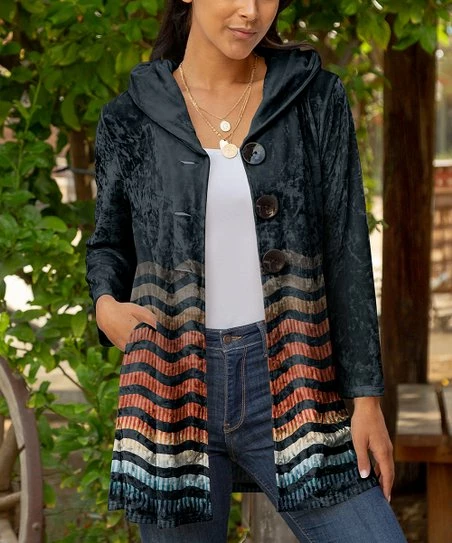 One button at the neckline pulls this sleek velvet cardigan together. Pockets are practical.
