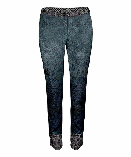 Lily | Navy & Turquoise Floral Geometric Velvet Skinny Pants – Women