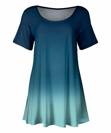 A pleated front ensures a polished look in this ombré short-sleeve tunic. Cut from stretch-friendly fabric.