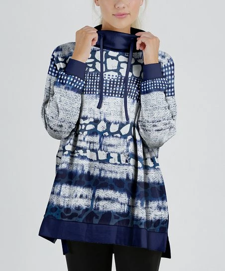 This casual pullover features a drawstring collar with a cowl neck to keep you cozy.