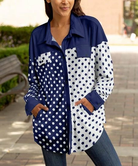 Lily | Navy & White Color Block Polka Dot Slip-Pocket Shacket – Women