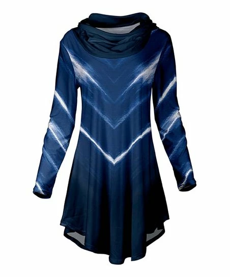 A draped cowl neckline and statement-making pattern elevate the look of this trendy tunic. Stretch-infused fabric and a flattering curved hem create a comfortable, leggings-friendly fit.