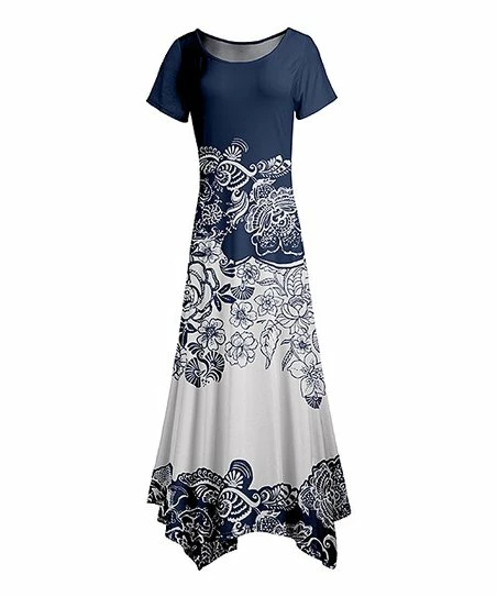 Give your look a lift with this bold and playful dress that starts with cool short sleeves and finishes with a sweeping handkerchief hem. A touch of stretch ensures all-day comfort.