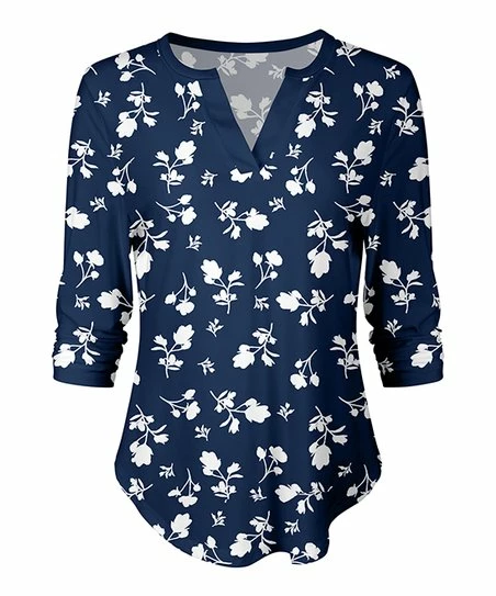 Versatile blue long-sleeve that features a classic notch neckline and stretch-enhanced fabric.