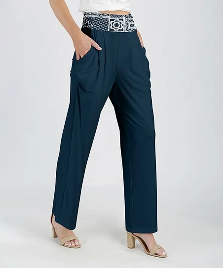 Casual pants featuring a geometric print, handy side pockets and light, stretch-infused fabric.