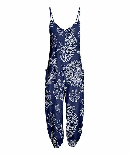Lily | Navy & White Paisley Pocket Sleeveless Jumpsuit – Plus