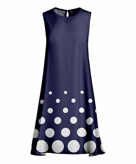 Add a splash of color to your wardrobe with this relaxed sleeveless dress featuring a fun polka dot print.
