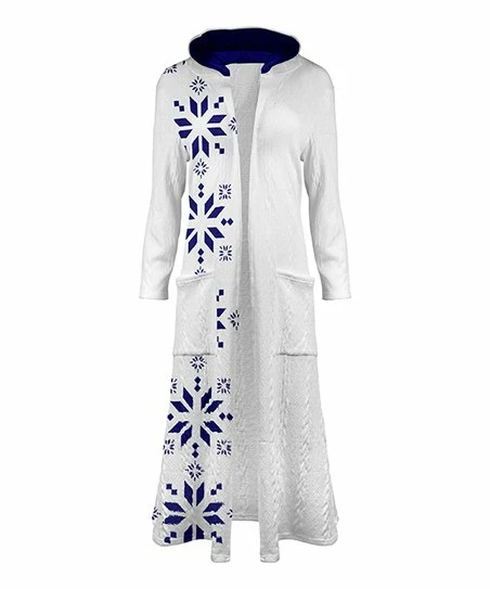 Layer like a fashion pro when you sport this sleek duster that boasts two front pockets, a cozy hood, and an eye-catching pattern.