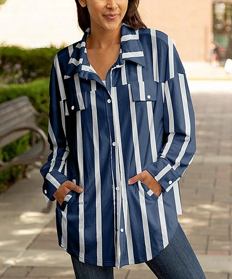 Lily | Navy & White Stripe Pocket Button-Up Shacket – Women