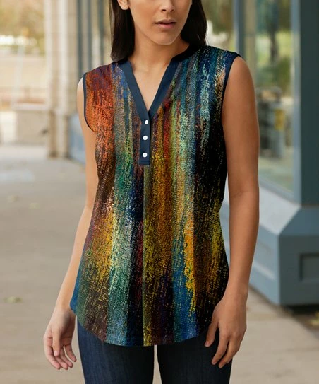 Bolster your sunny-day style when you bring this charming tank that features soft, stretch-infused fabric finished with an eye-catching pattern and a flattering V-neckline.