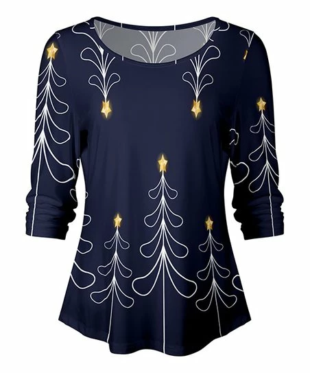 Go for festive style in this tunic featuring a merry pattern and long sleeve to keep you cozy on cooler days. A dose of stretch in the material ensures all-day comfort.