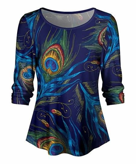 Featuring a swingy peplum, half sleeves and stretch fabric in a lively print, this boatneck top is all about the details.