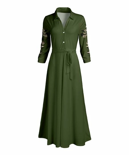 Make a dramatic style statement with this bold-patterned maxi dress designed with a sophisticated button-up silhouette and belted waist for a form-flattering fit.
